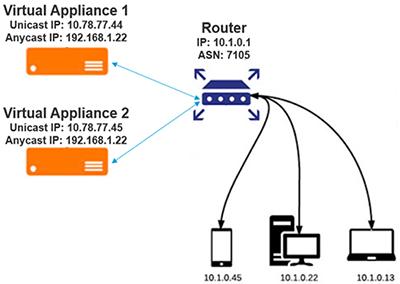 Serveren kan konfigureres med BGP eller ens foretrukne IGP, og bruger routing-protokollen til at annoncere sin service-adresse til routeren, lidt ligesom man har et loopback-interface på en router.