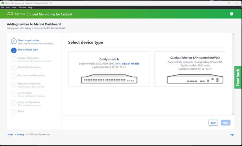 2c: Så vælger du den typeenhed, du gerne vil monitorere (WLC er måske ikke tilgængelig endnu for dig kære læser)