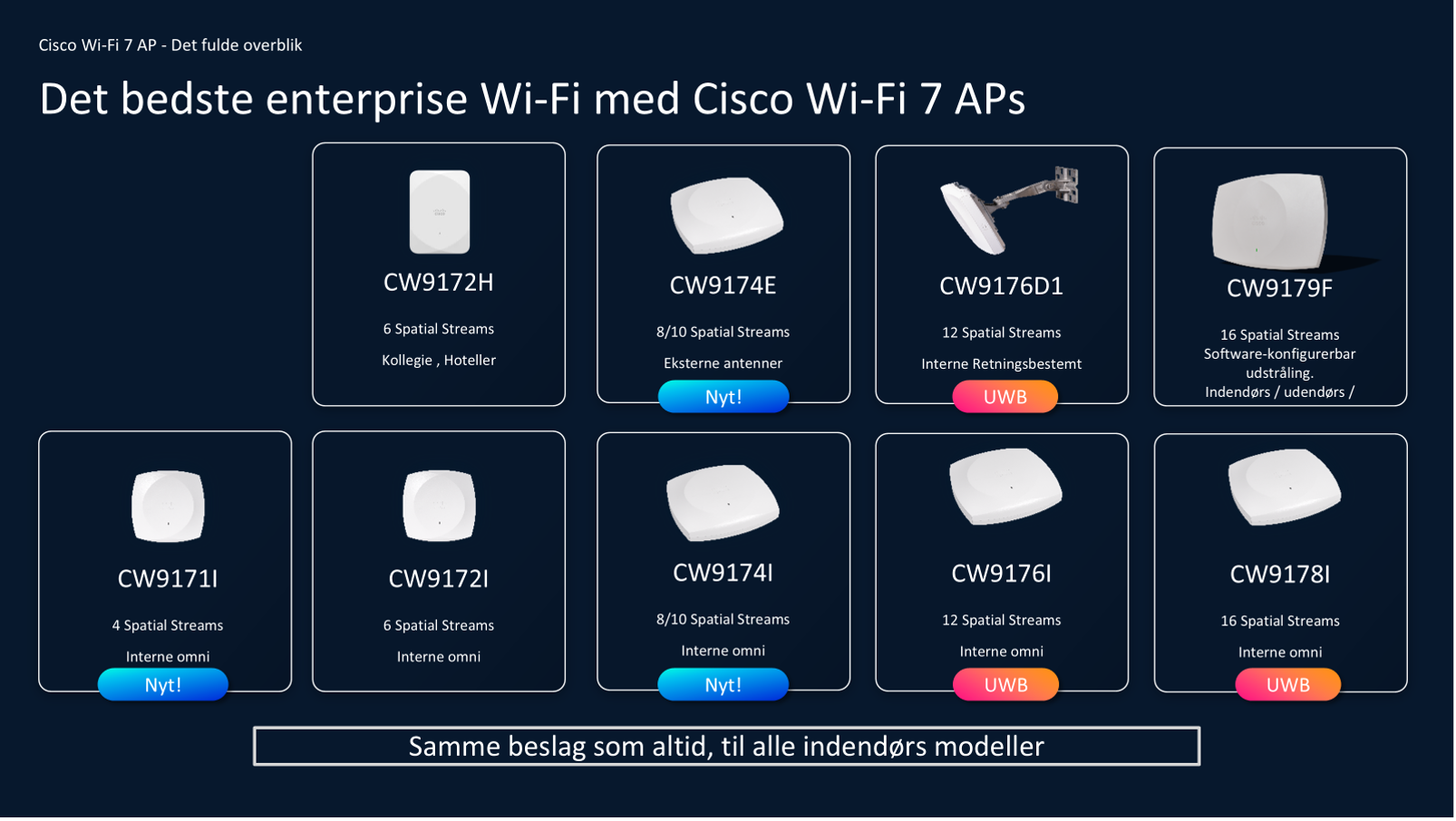 Cisco har en række Wi-Fi 7 AP’er klar, der gerne skulle kunne dække de flestes behov.